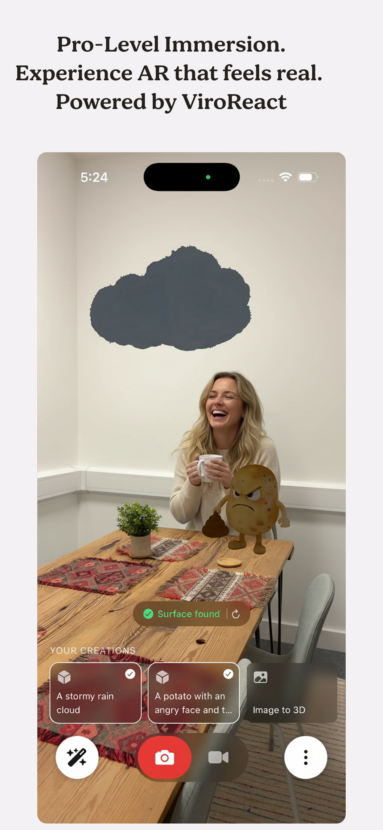 Experience AR that feels real. Powered by the ViroReact renderer, Play AR features advanced occlusion (so virtual objects hide behind real ones) and stunning out-of-the-box shader effects. It’s high-performance rendering, right in your pocket.